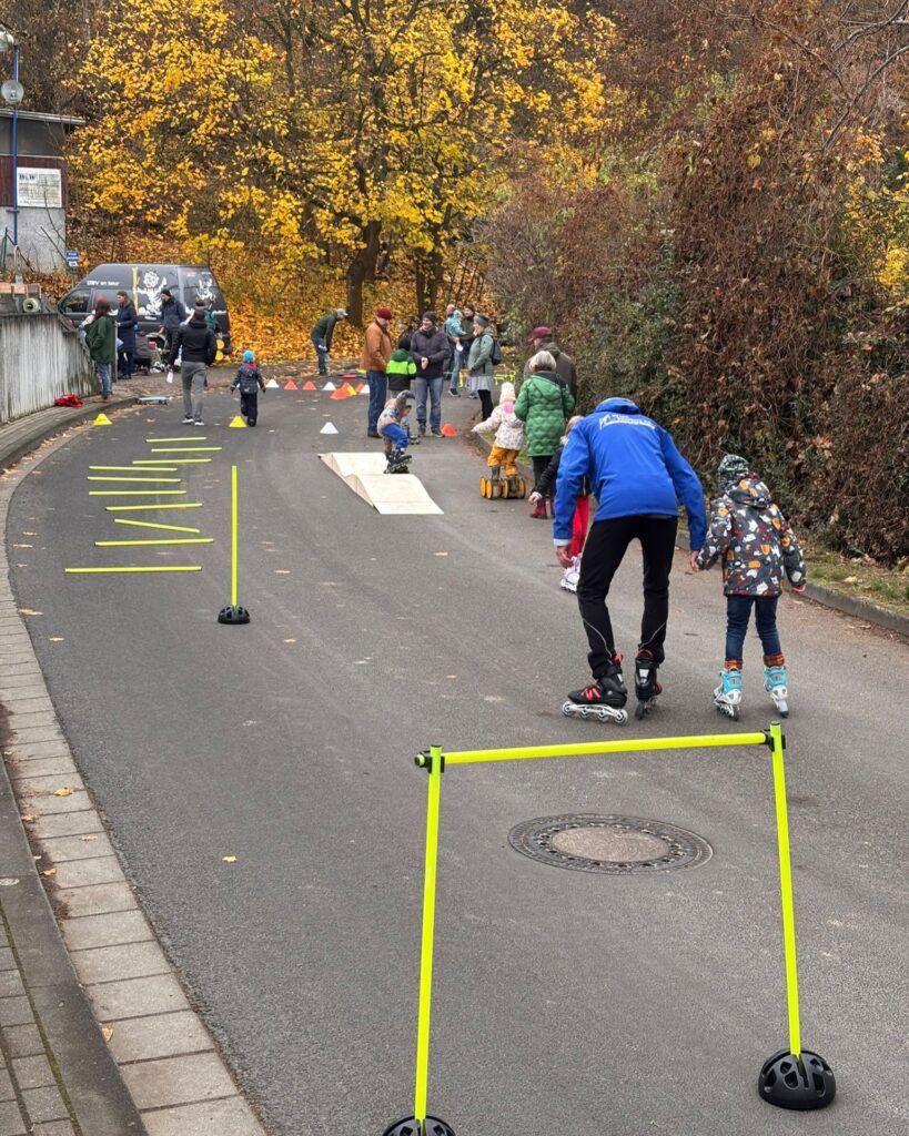Der Inliner- und Skiroller-Parcours war eine sportliche Herausforderung. Man konnte ihn je nach Lust und Laune absolvieren. Unsere Trainer hatten eine neue Übung vorbereitet. Die Pumpwave war im Parcours besonders beliebt. Man konnte sie mit Skirollern oder Inlinern befahren. 🛼⛷️