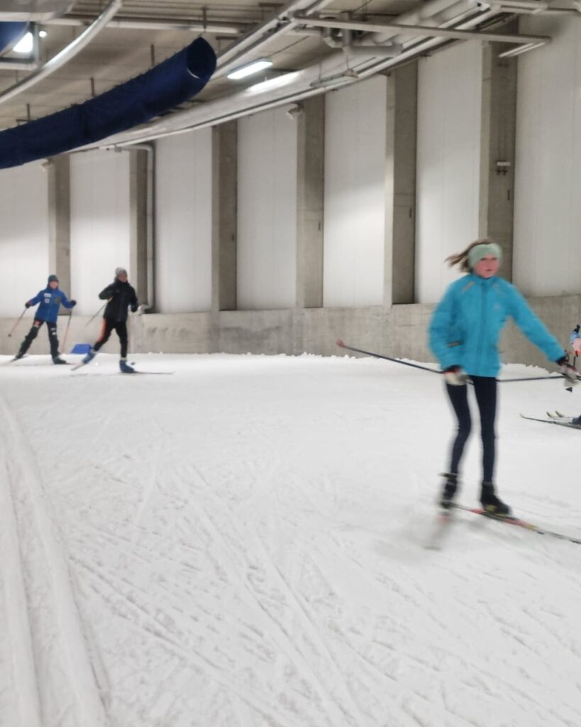 Schon am Anreisetag stand der erste Programmpunkt an: Ab in die Skihalle, um die ersten Erfahrungen auf Schnee zu sammeln und wieder ein Gefühl für die Bretter zu bekommen. Es gab keine Grenzen – alle durften sich ausprobieren: Runden drehen, Bergsprints testen oder sogar kleine Skisprünge über eine selbstgebaute Mini-Schanze wagen. Das Motto lautete: Ankommen, Schnee-Feeling bekommen, Spaß haben! 😄❄️ Auch die Kleinsten hatten richtig Freude, meisterten ihre ersten Schwünge und waren begeistert von der Halle.