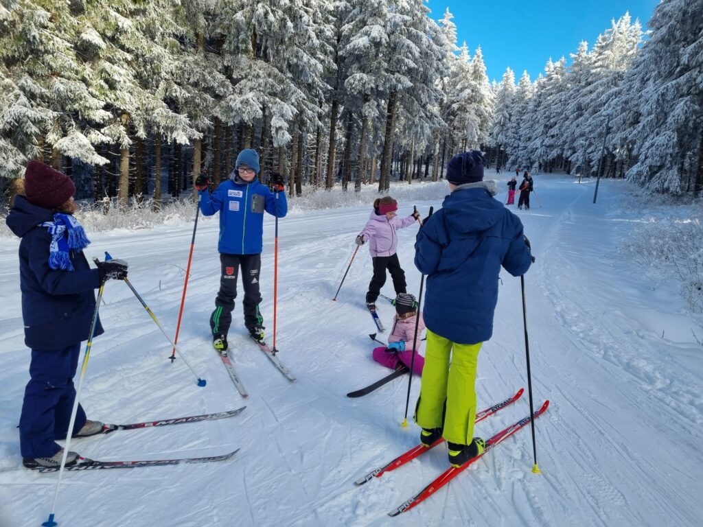 Da es in der Woche zuvor kräftig geschneit hatte, wurde beim gemeinsamen Abendessen neugierig gecheckt, welche Pisten draußen in Oberhof geöffnet sind. Die Vorfreude auf den nächsten Tag war riesig – und sie wurde nicht enttäuscht. Denn Oberhof zeigte sich von seiner besten Seite: Pulverschnee und Sonnenschein! ❄️☀️ Die Trainingseinheiten machten dadurch doppelt Spaß. Viele Übungen konnten perfekt mit dem frischen Schnee kombiniert werden, wodurch Technik und Spaß Hand in Hand gingen.
