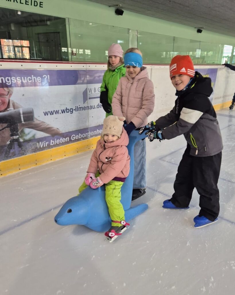 Am Abreisetag folgte noch ein besonderes Highlight ⭐: ein Besuch der Eishalle in Ilmenau ⛸️ für ein kleines Schlittschuh-Training. Es war ein wertvolles Training für beide Teams – denn ohne gutes Gleichgewicht funktionieren weder Skispringen noch Skilanglauf.